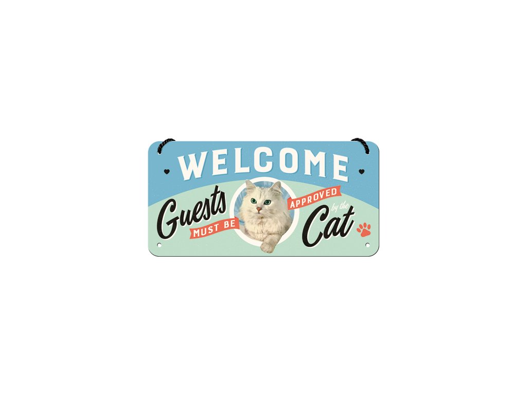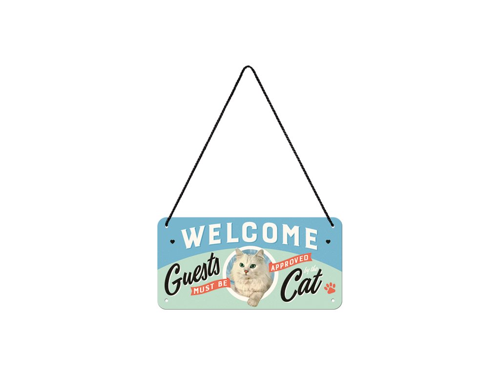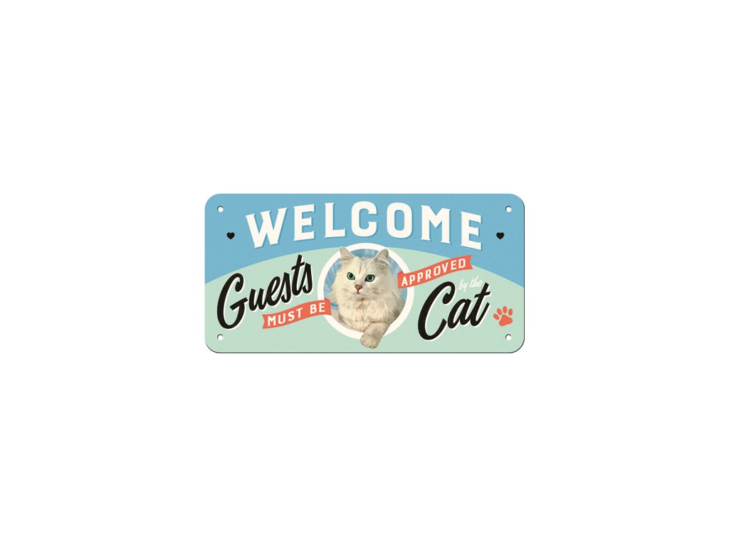 Plechová cedule 10x20 cm s 3D prolisem v motivu Welcome Guests Cat.